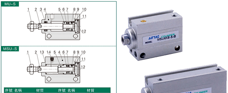 AirTAC/亚德客的自由安装气缸亚德客AirTAC小型自由安装气缸,MU8X6-S