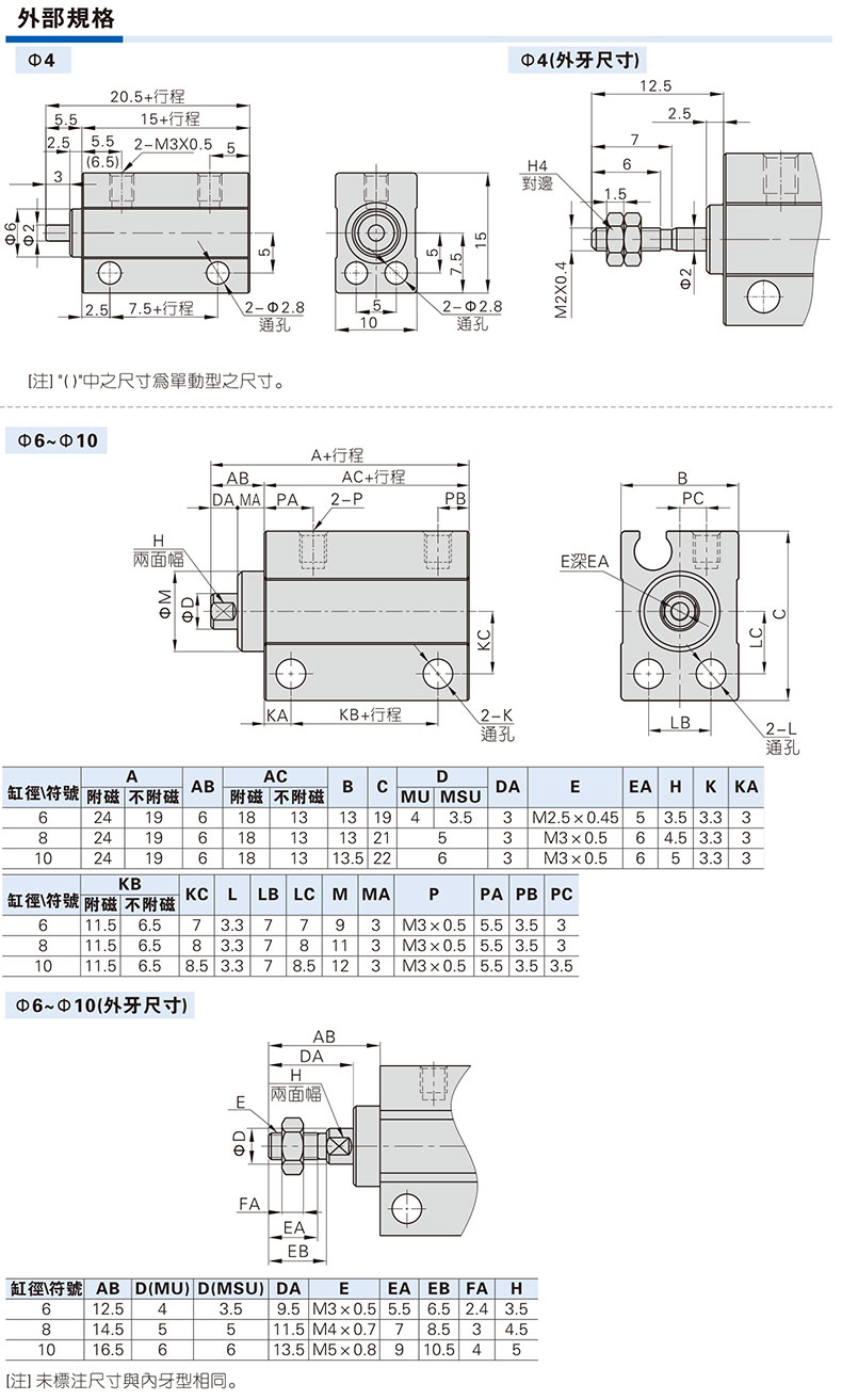 艾逊订货号:B1052098 原始型号:亚德客AirTAC 小型自由安装气缸,MU8X6-S 品牌:AirTAC/亚德客 品牌所属地:中国