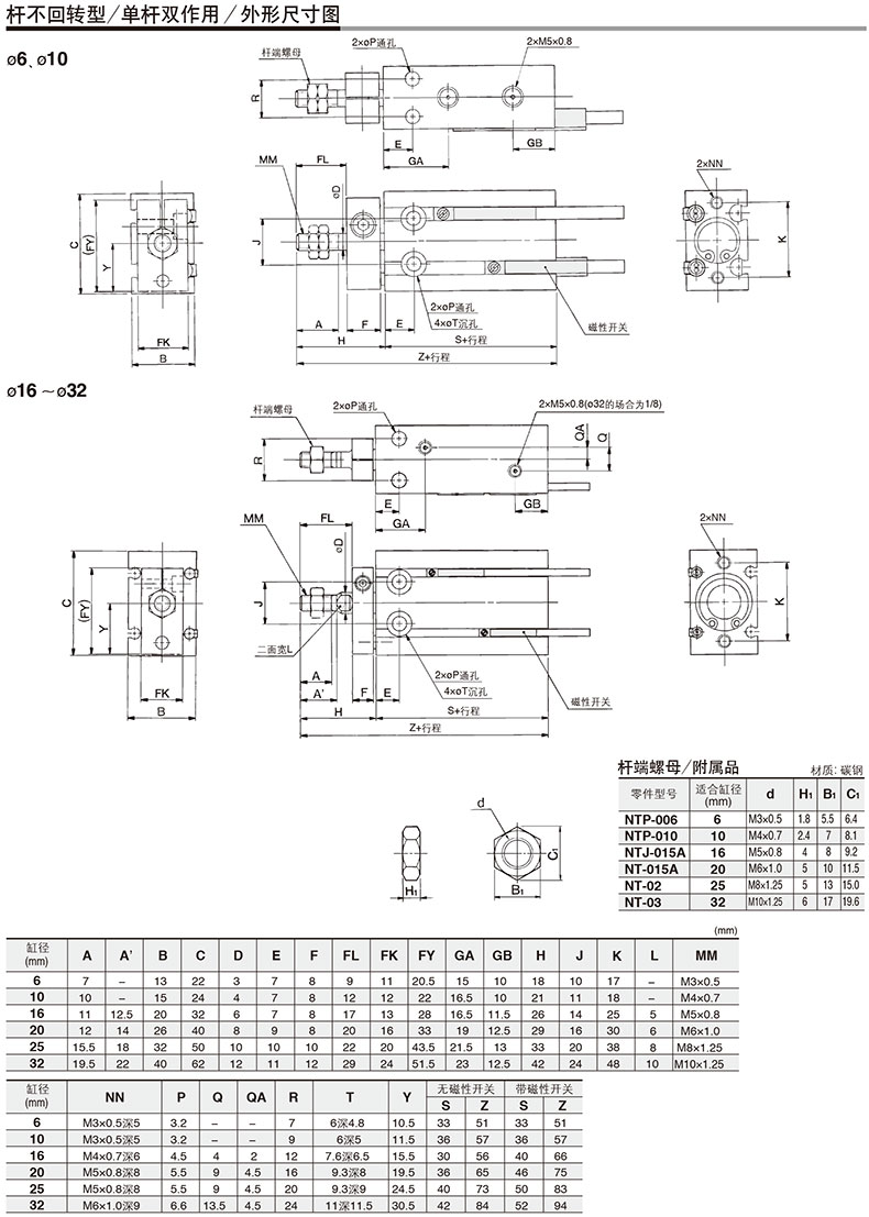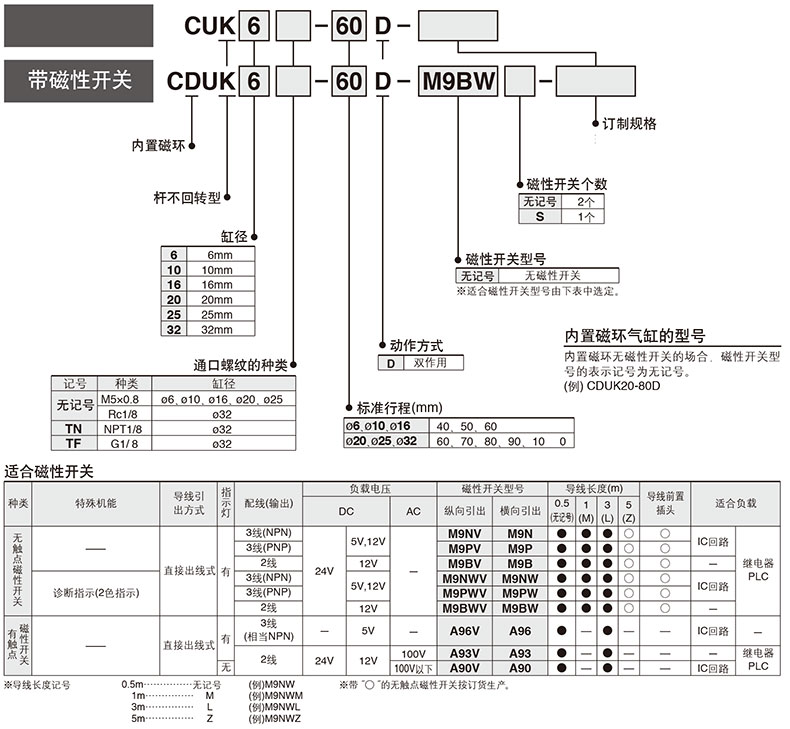SMC的自由安装气缸SMC自由安装型气缸,长行程型,杆不回转型,单杆双作用,CDUK20-80D