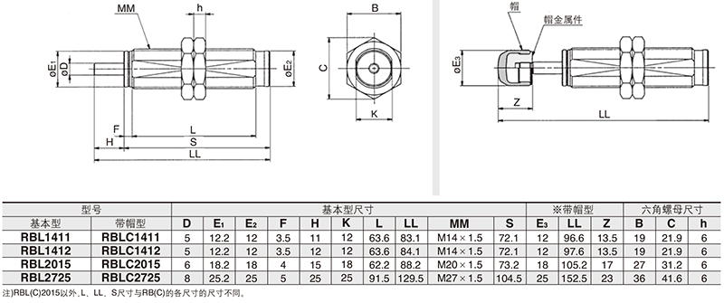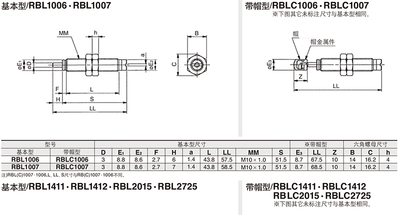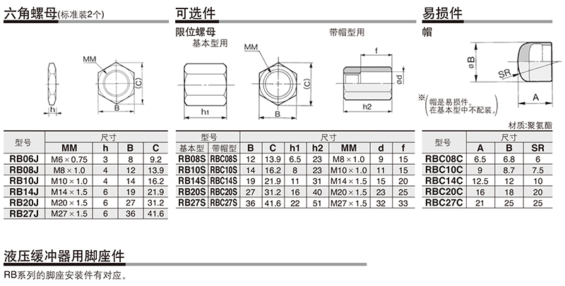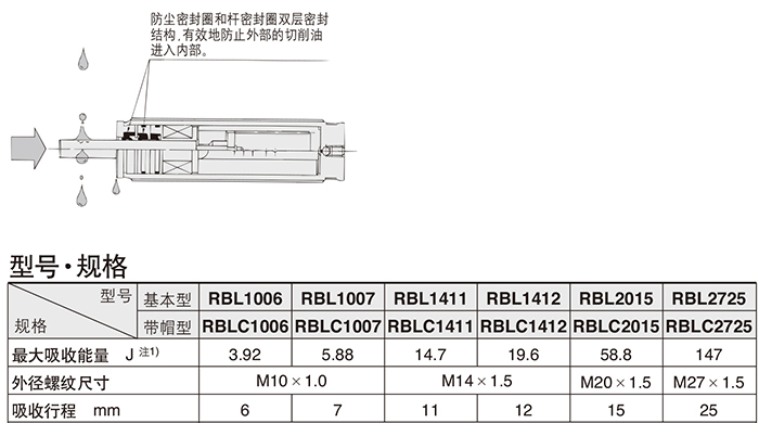 SMC的液压缓冲器SMC耐冷却液型液压缓冲器,带帽型,RBLC1007