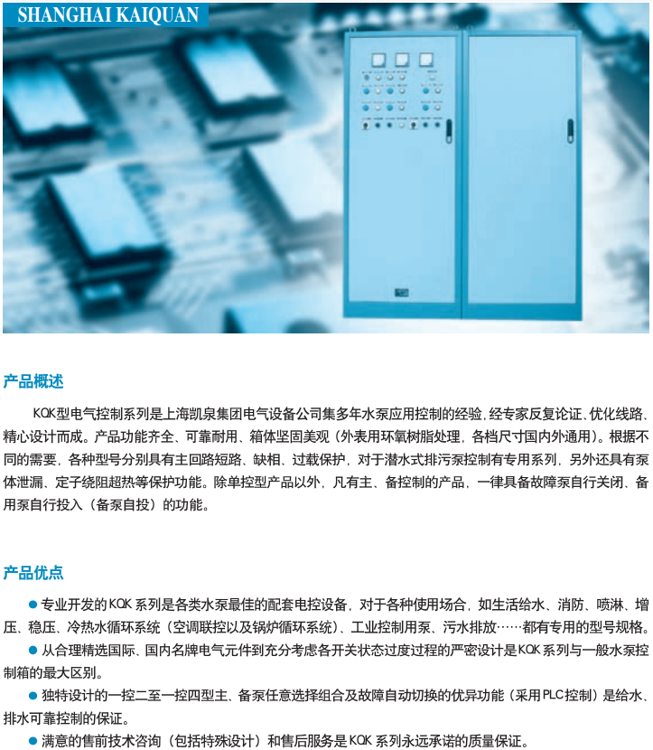 KAIQUAN/凯泉的潜水泵控制柜凯泉KQK排污泵控制柜,二用一备,自动交替,自耦降压起动,通配,KQK/T-3AcB-JYz-55,不含浮球