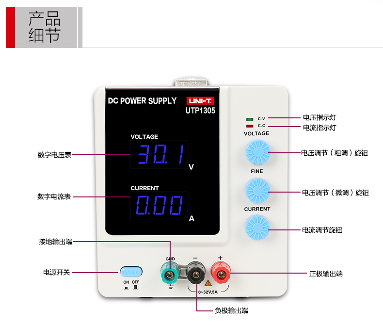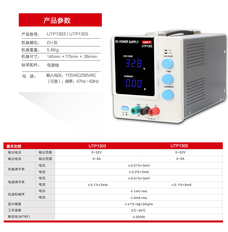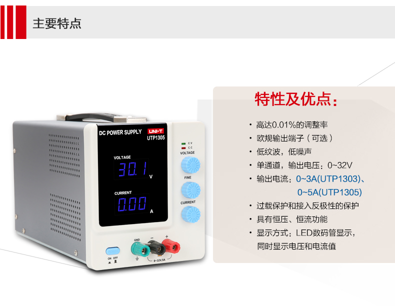 艾逊订货号:F1075629 原始型号:优利德/UNI-T 线性直流稳压电源,UTP1305 品牌:UNI-T/优利德 品牌所属地:中国
