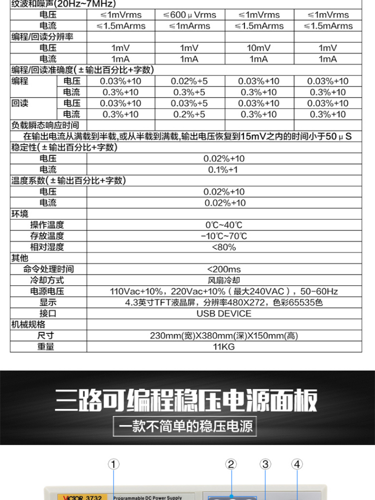 艾逊订货号:F1075630 原始型号:胜利 可编程线性直流电源,VICTOR 3732 品牌:VICTOR/胜利 品牌所属地:中国