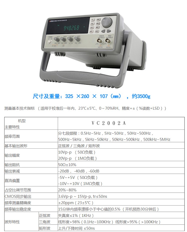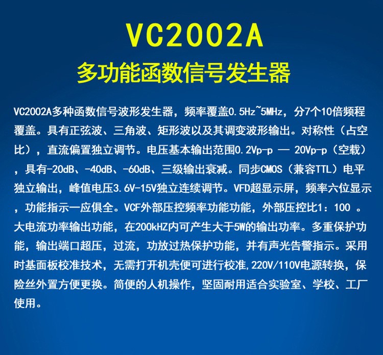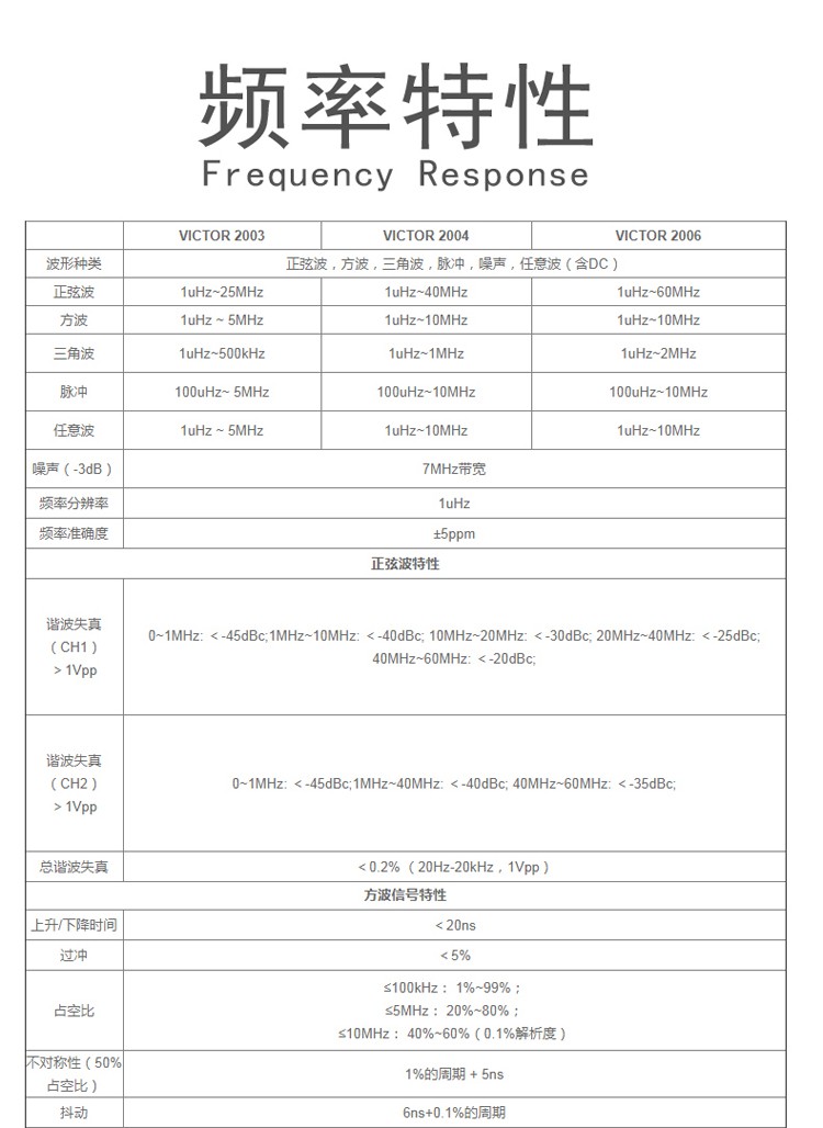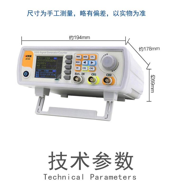 艾逊订货号:F1075642 原始型号:胜利 双通道DDS函数信号发生器,VICTOR 2006 品牌:VICTOR/胜利 品牌所属地:中国