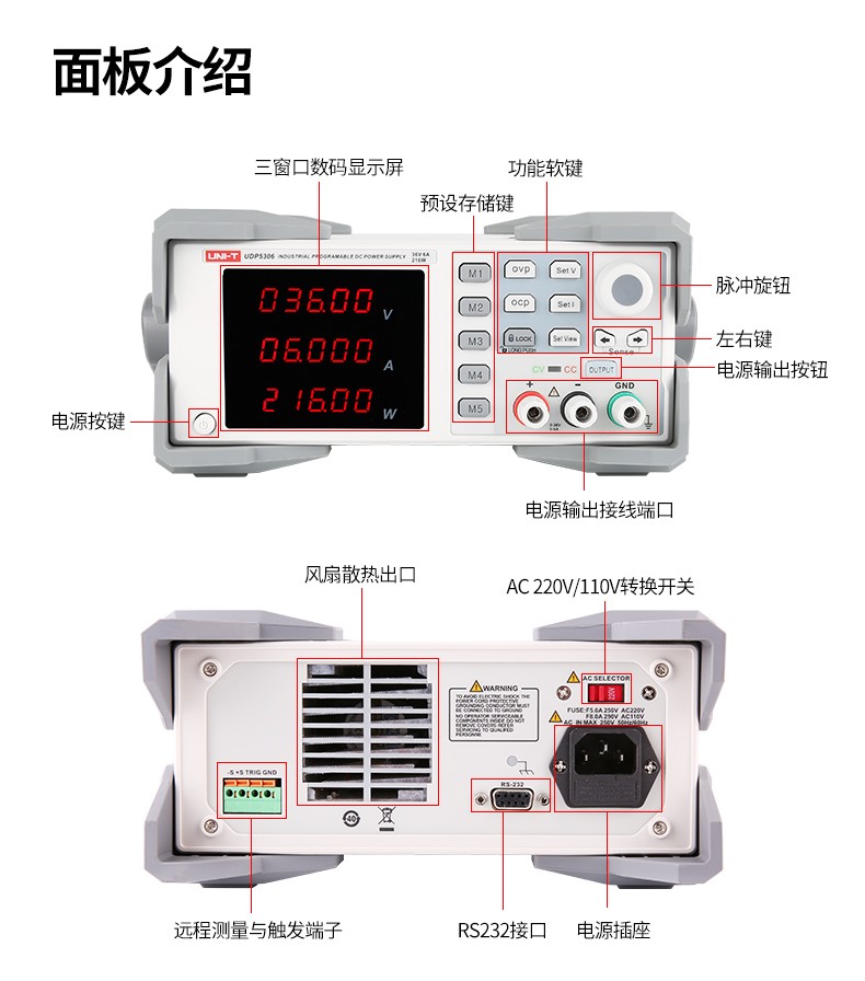 艾逊订货号:F1075679 原始型号:优利德/UNI-T 单通道可编程线性直流稳压电源,UDP5303 品牌:UNI-T/优利德 品牌所属地:中国