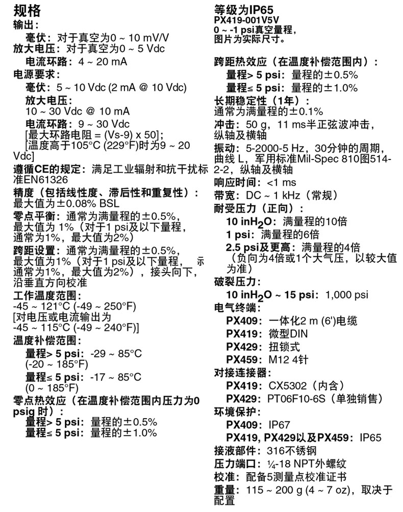 OMEGA 微加工硅高精度压力传感器,±1psi 4-20mA输出 PX409-001CGI |