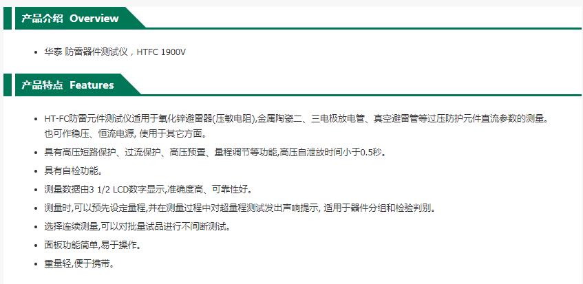 华泰的避雷器测试仪器华泰防雷器件测试仪,HTFC1900V