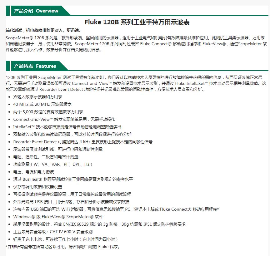 福禄克/FLUKE 工业用手持式示波器,40MHz 套件,FLUKE-125B/CN/S |