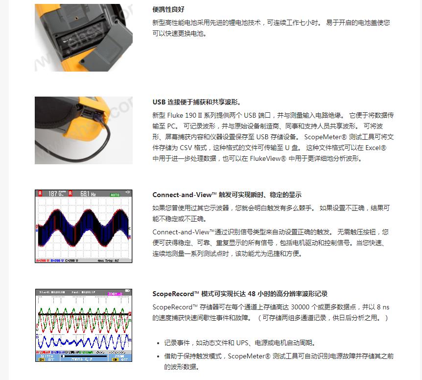 福禄克/FLUKE 彩色数字示波器,200MHz,4通道 DMM/外部输入,FLUKE-190-204/AU |