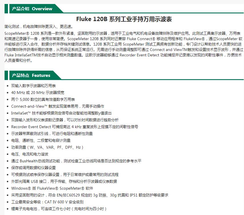 艾逊订货号:F1076228 原始型号:福禄克 FLUKE-125B/CN/S 品牌:FLUKE/福禄克 品牌所属地: