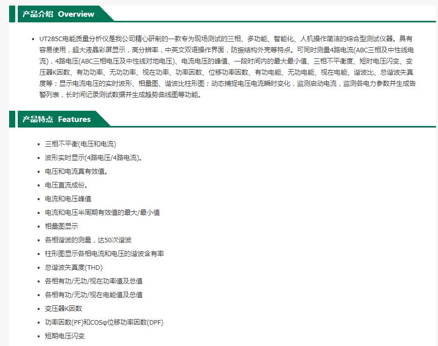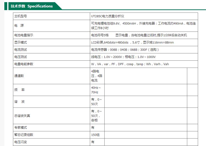 UNI-T/优利德的电能质量分析仪优利德/UNI-T电能质量分析仪,UT285C(300F电流钳6000A)