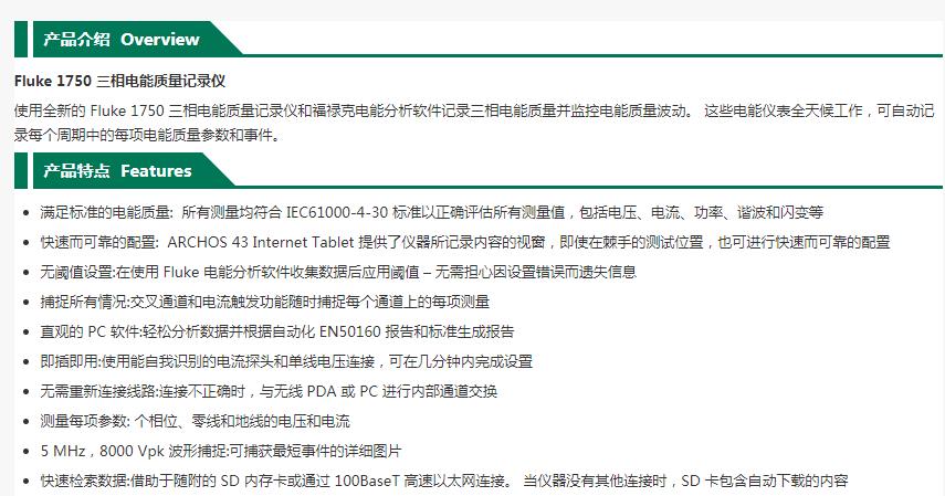 福禄克/FLUKE 三相电能质量记录仪,FLUKE-1750/B/ET |