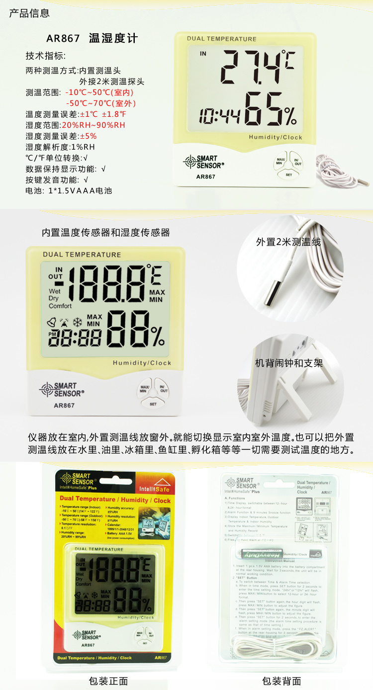 艾逊订货号:F1077215 原始型号:希玛 AR867 品牌:SMART SENSOR/希玛 品牌所属地:中国