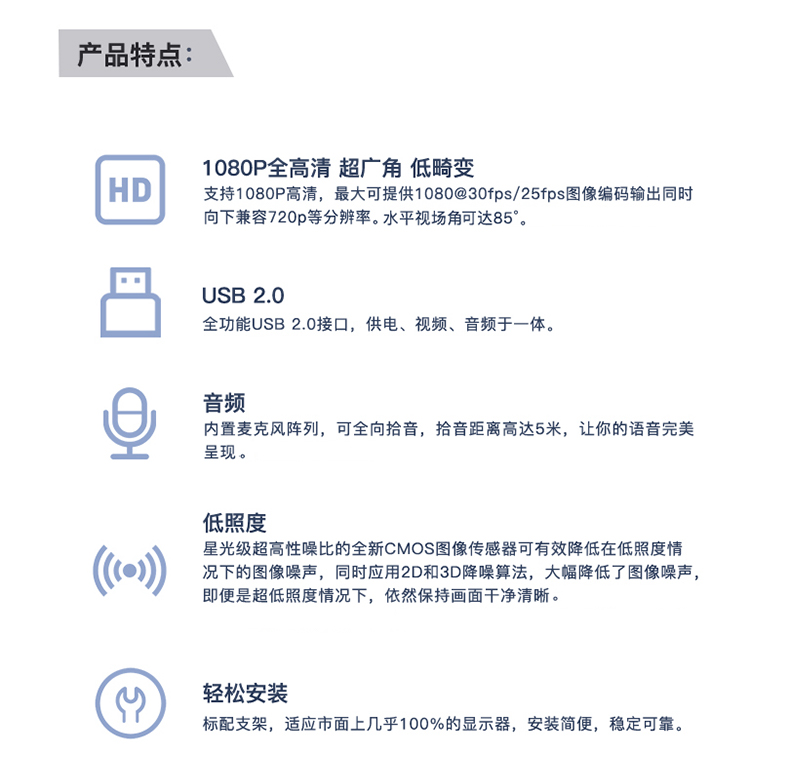 中文大华200万像素高清USB摄像机(IPTV)电脑摄像头大广角 会议视频 直播聊天DH-HAC-HU3200E-Z-A-0360B-B |