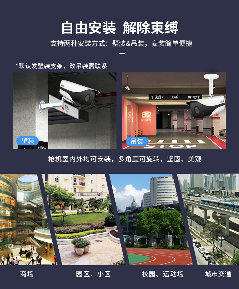 大华dahua监控摄像头 200万星光级高清摄像头POE网线供电 网络高清监控器红外夜视DH-IPC-HFW2233M-I1 8mm |