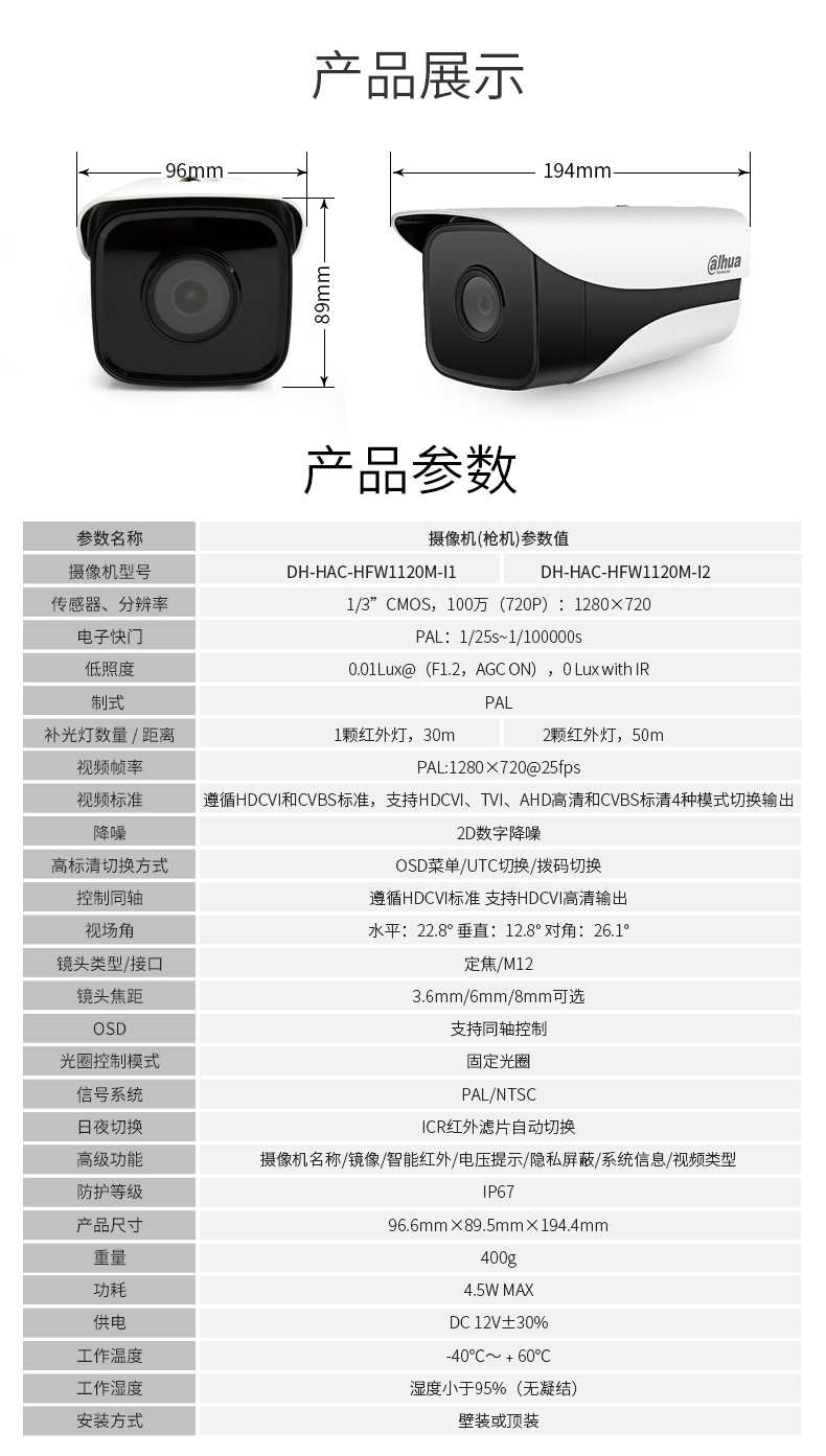 大华dahua监控摄像头200万网络枪机监控摄像头POE供电星光级双灯高清红外夜视 DH-IPC-HFW2233M-I2 镜头12MM |