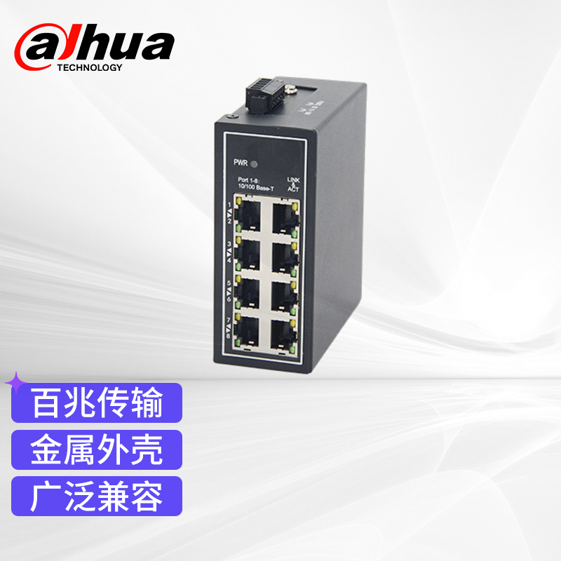 大华dahua交换机 8口百兆交换机 网络监控交换器 工业级导轨式交换机 DH-IS1000C-8ET-DC |