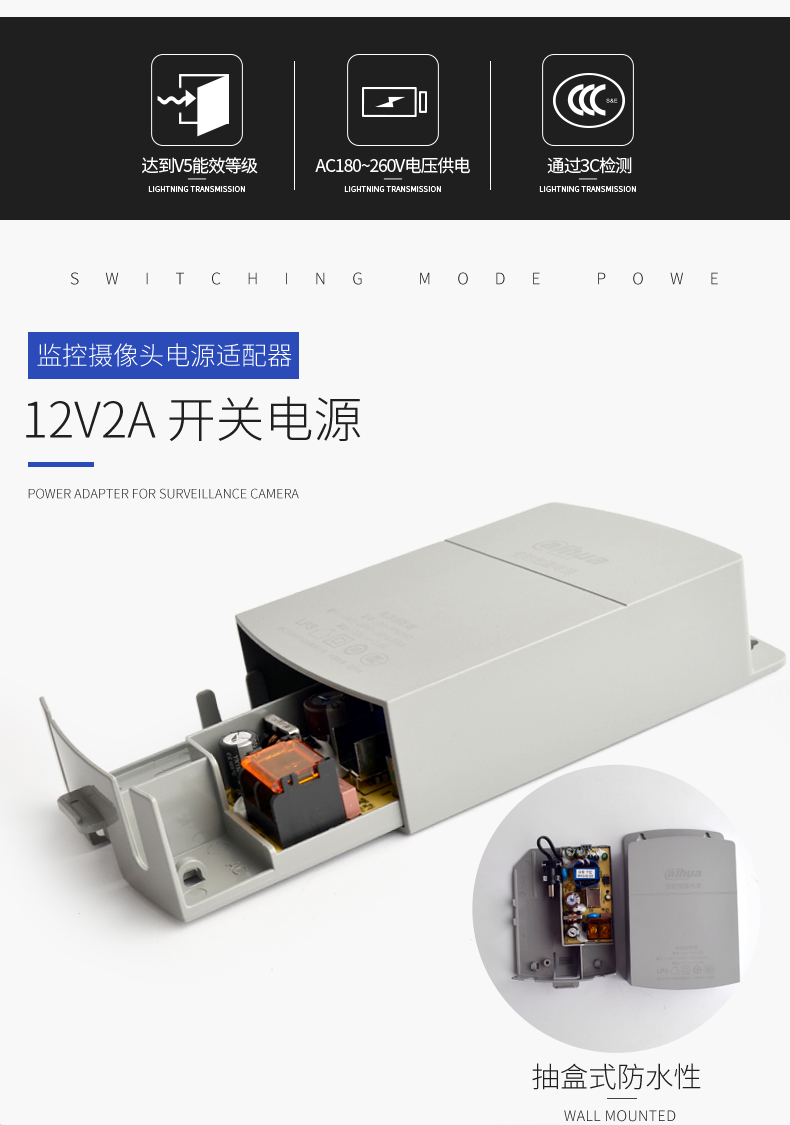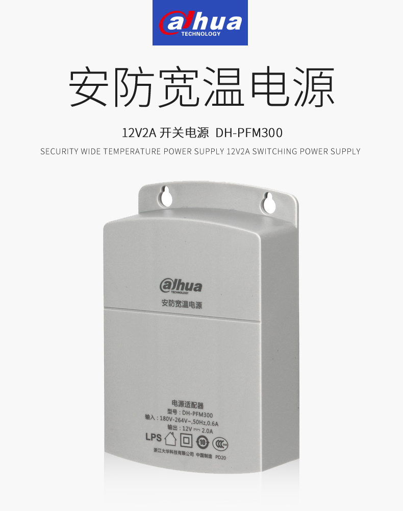 大华 Dahua 摄像头电源 DC12V室内监控电源 桌面式12V2A电源适配器 监控摄像头壁挂电源 DH-PFM320D |