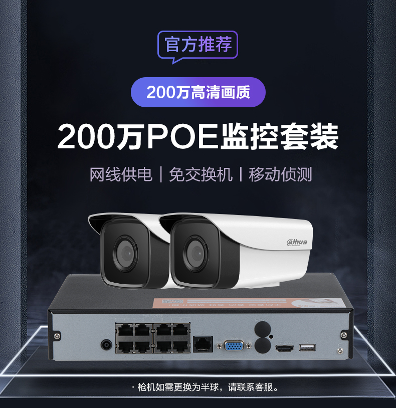 大华dahua监控摄像头套装 200万套装 POE供电红外夜视 1080P手机监控 室内室外高清监控套装 11路24T【定制】 |