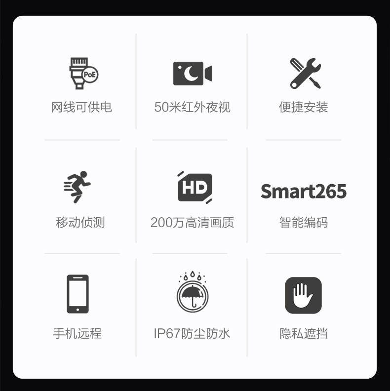 大华dahua 200万摄像头POE供电半球红外夜视H.265监控摄像头室内商用 DH-P30T1(300万拾音半球) 3.6mm |