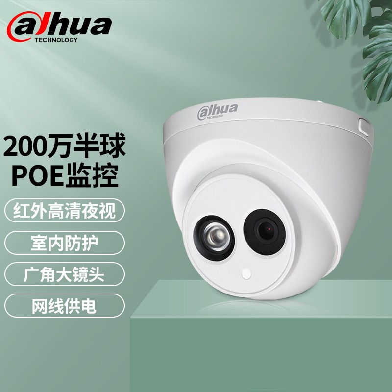 大华dahua 200万摄像头POE供电半球红外夜视H.265监控摄像头室内商用 DH-P20T1(200万红外半球) 3.6mm |