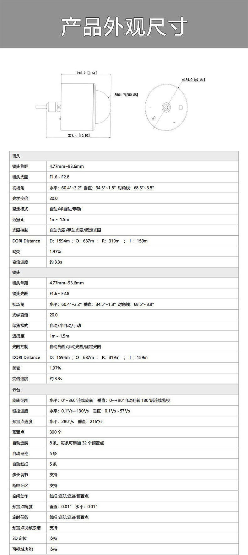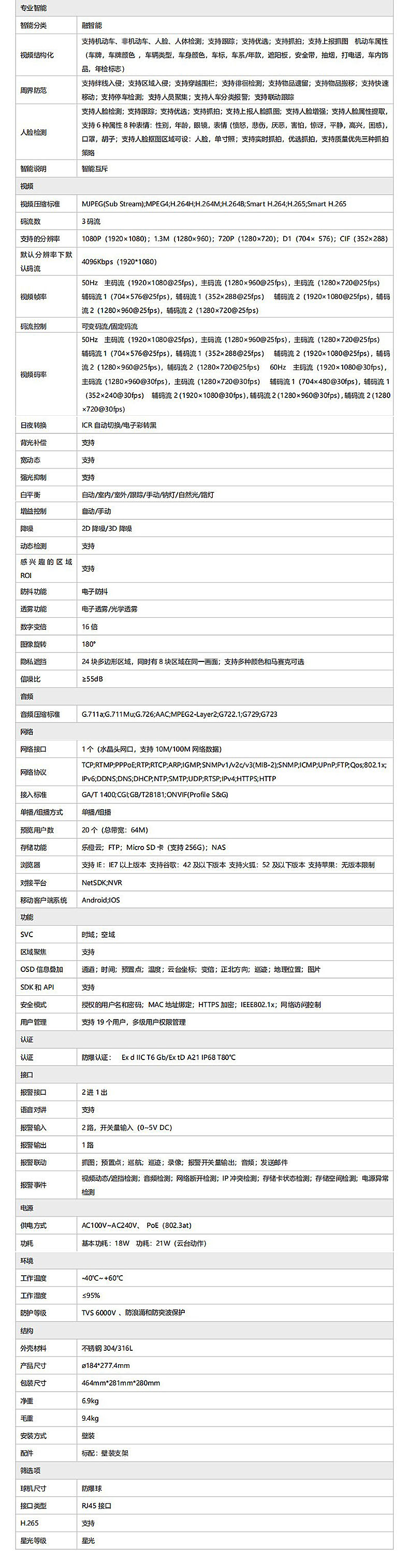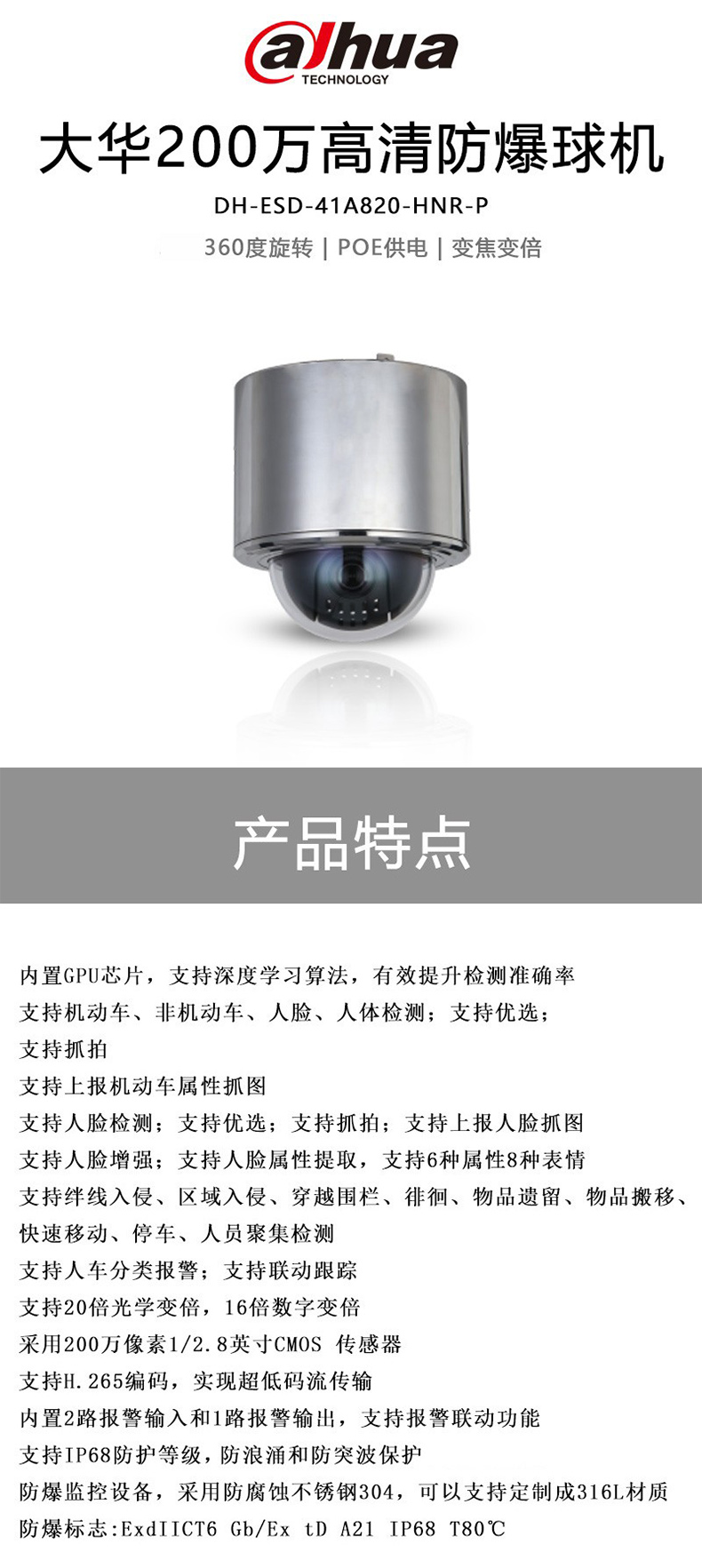 大华球机 200万 20倍光学变焦 智能云台球机 音频/外接拾音器 360度云台旋转球机 DH-SD6C82F-GN |