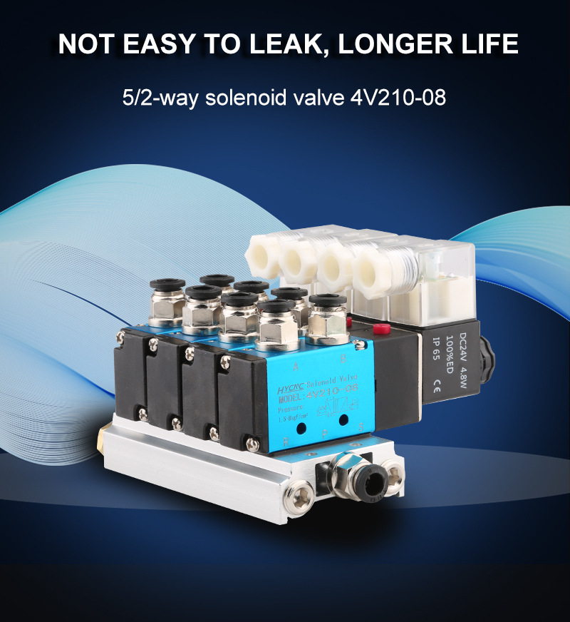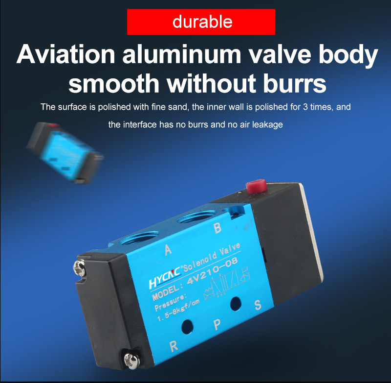 HYCNC的备件HYCNC气动电磁阀4V210-08跨境货源24v线圈带消音器220v二位五通换向阀