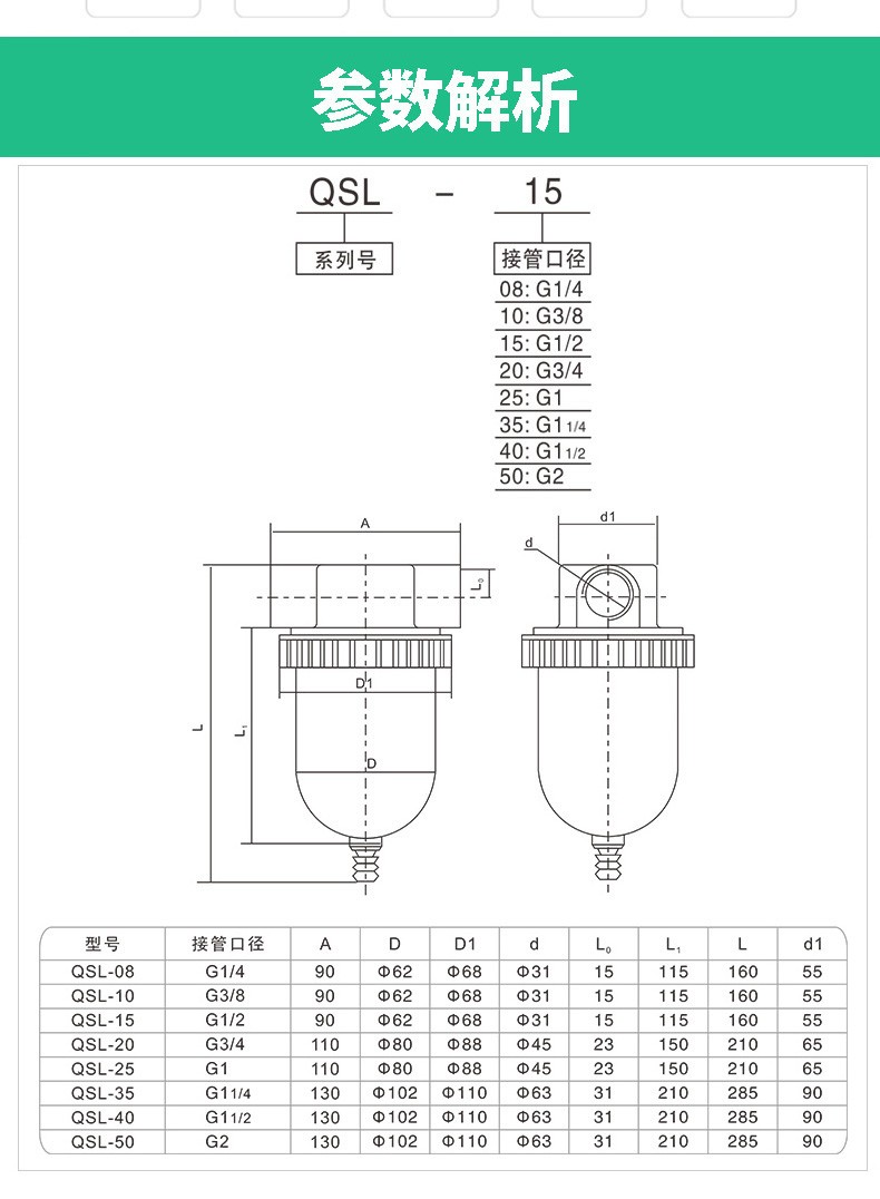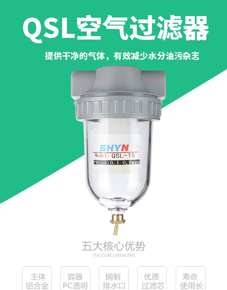 艾逊订货号:M1012713 原始型号:亦牛 空压机气源过滤器QSL-20/QSL-15空气过滤器气源处理器油水分离器QSL过滤器 卡其色 QSL-40(1.5寸螺纹DN40) 品牌:亦牛 品牌所属地:中国