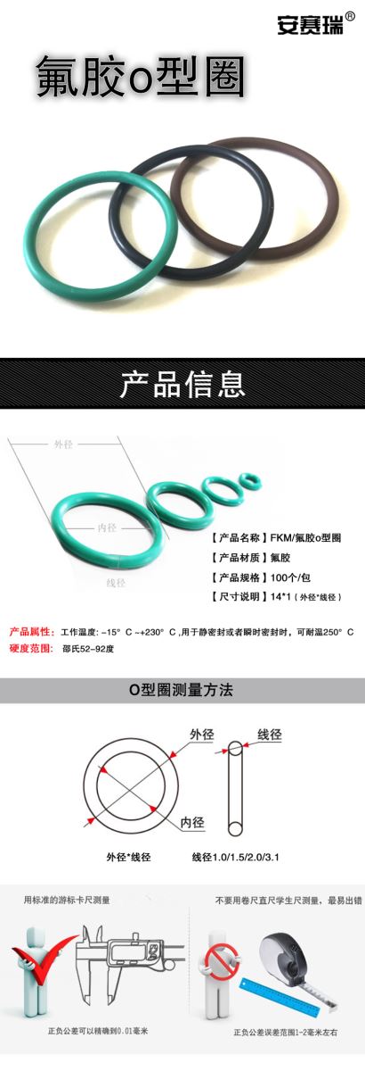 艾逊订货号:M1012787 原始型号:安赛瑞 氟胶o型圈密封圈o型圈 FKM氟橡胶密封胶圈 黑色 外径30*3.1mm 品牌:SAFEWARE/安赛瑞 品牌所属地:中国