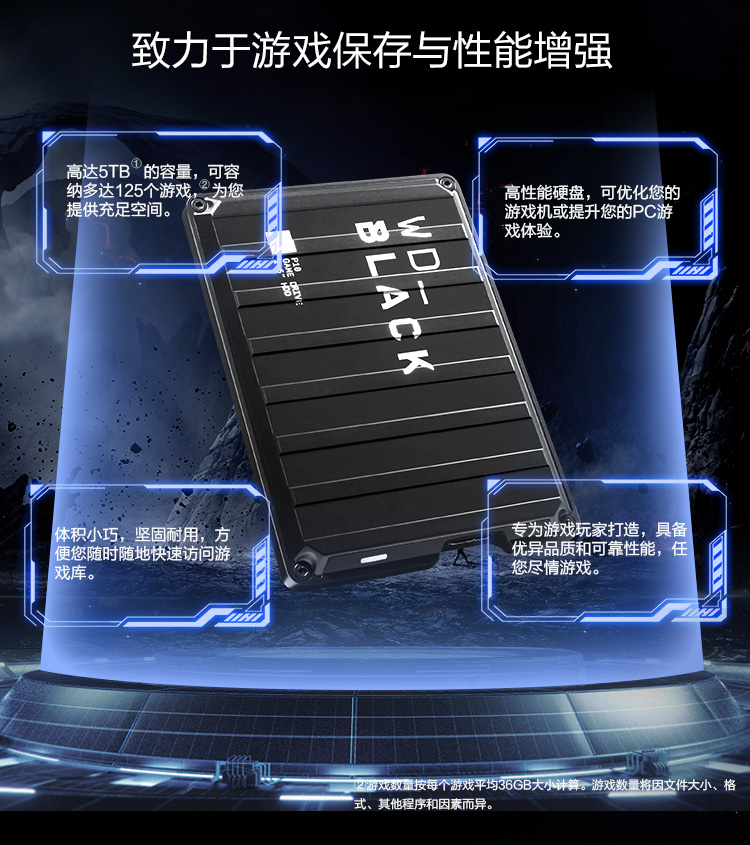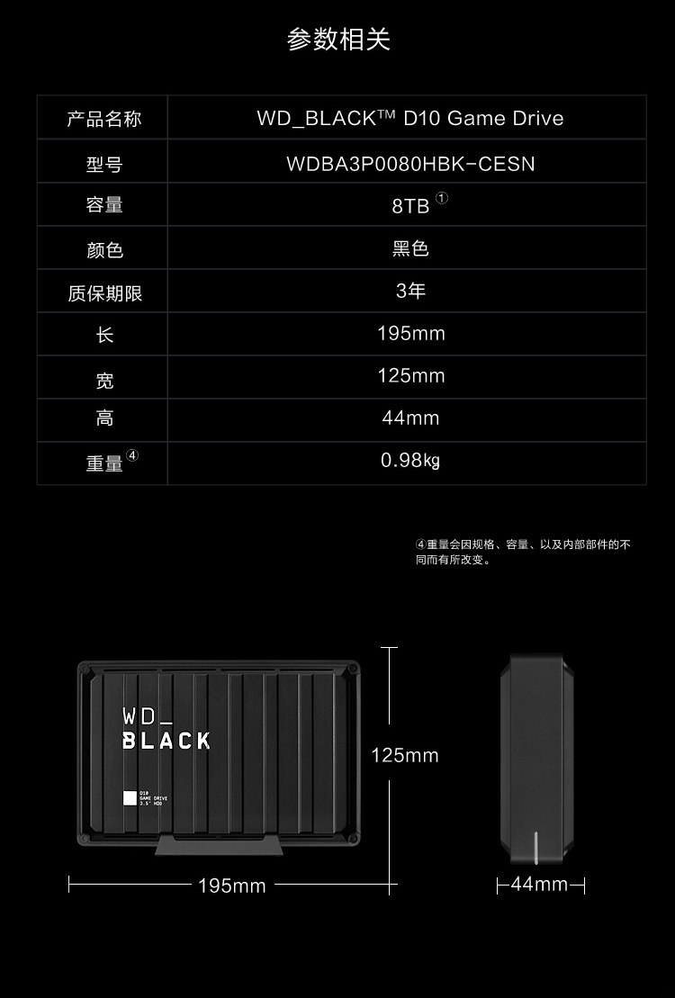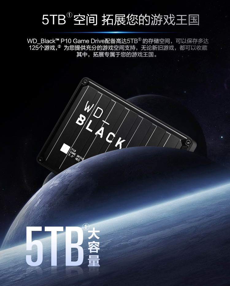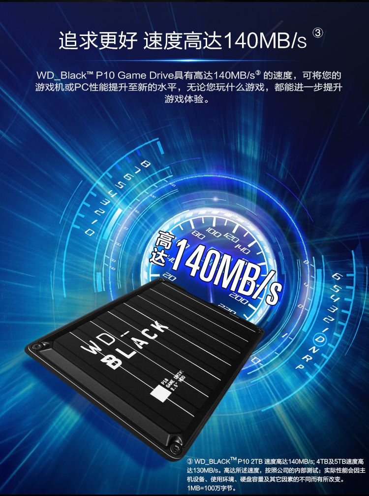 艾逊订货号:M1012792 原始型号:西部数据(WD)Black P10/D10 游戏移动硬盘2T4T5T8T12T PS4/XONE 便携式 2TB(WDBA2W0020BBK) 品牌:西部数据 品牌所属地:中国