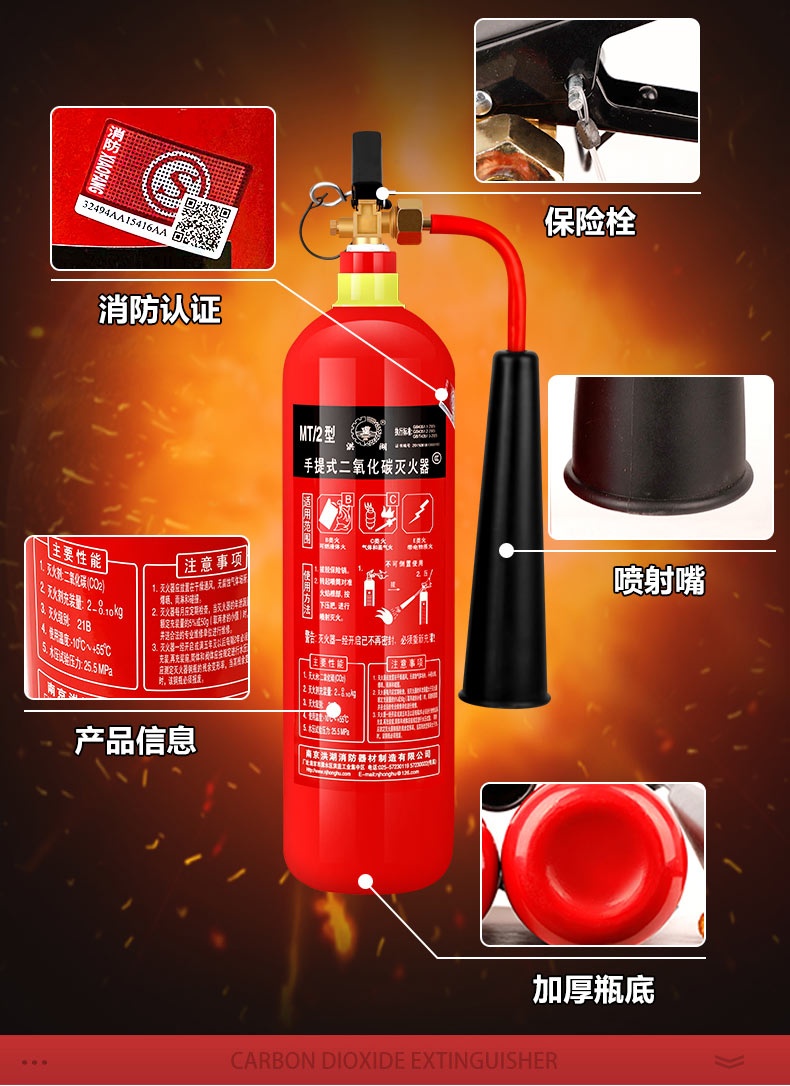 洪湖的备件洪湖二氧化碳灭火器3公斤CO2手提式气体机房精密仪器灭火器MT/3