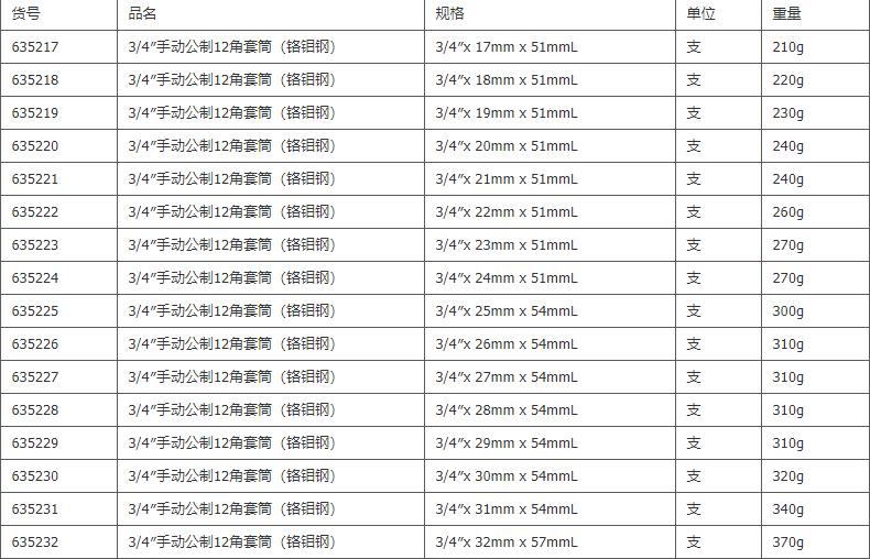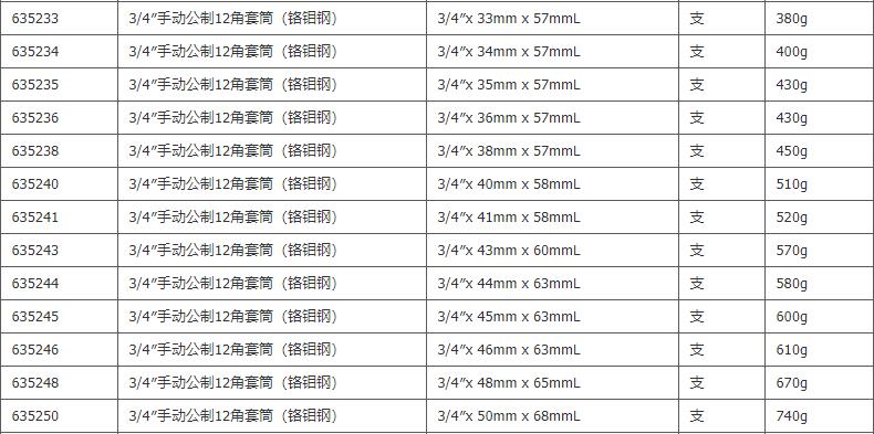 天赋genius 3/4"(19mm)手动公制12角套筒,铬钼钢,3/4"*41mm*58mmL,635241 |