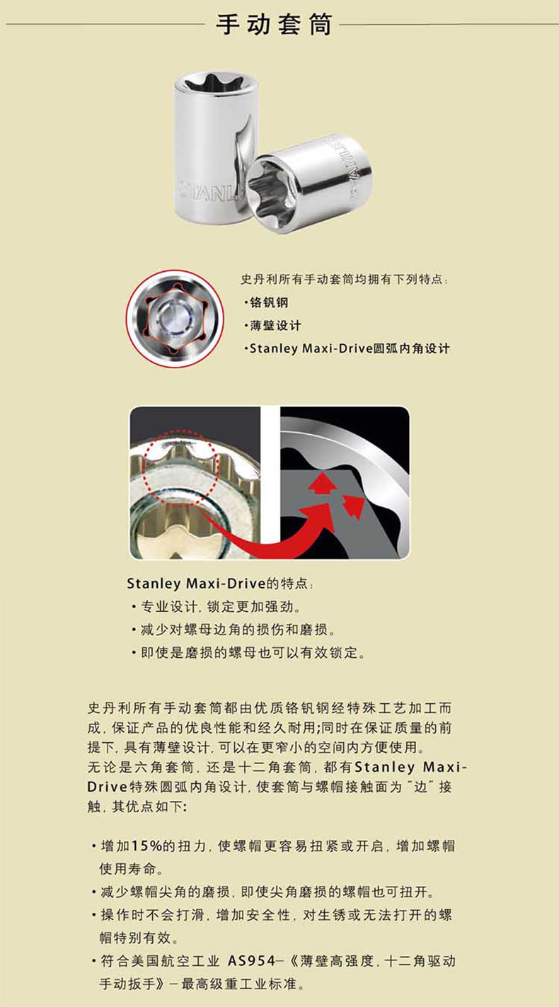 艾逊订货号:D1008207 原始型号:史丹利套筒,十二角套筒,12.5mm系列公制加长型 13mm,86-421-1-22 品牌:STANLEY/史丹利 品牌所属地: