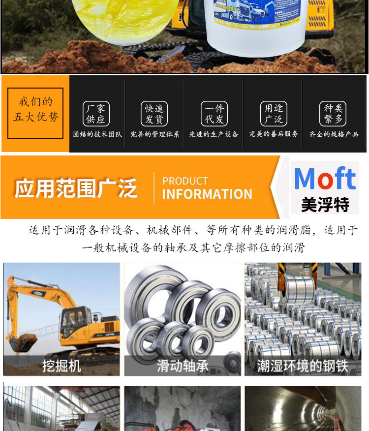 艾逊订货号:H1009154 原始型号:黄油润滑脂锂基脂0#润滑油脂3#工程机械专用脂15kg挖机高温轴承 品牌:美浮 品牌所属地:中国