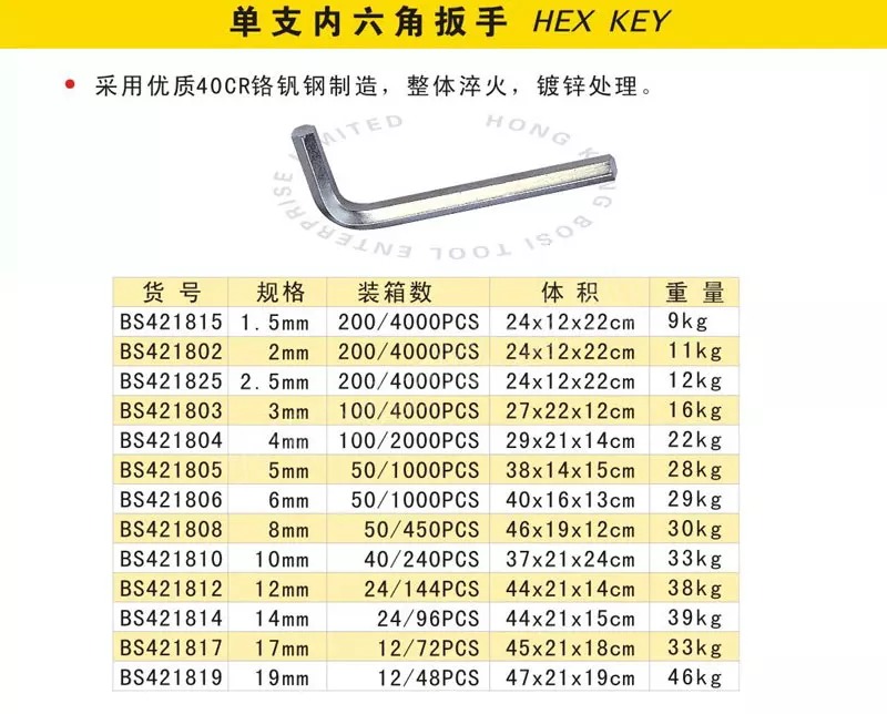 艾逊订货号:D1010777 原始型号:内六角扳手,2mm,BS421802 品牌:BOSI/波斯 品牌所属地: