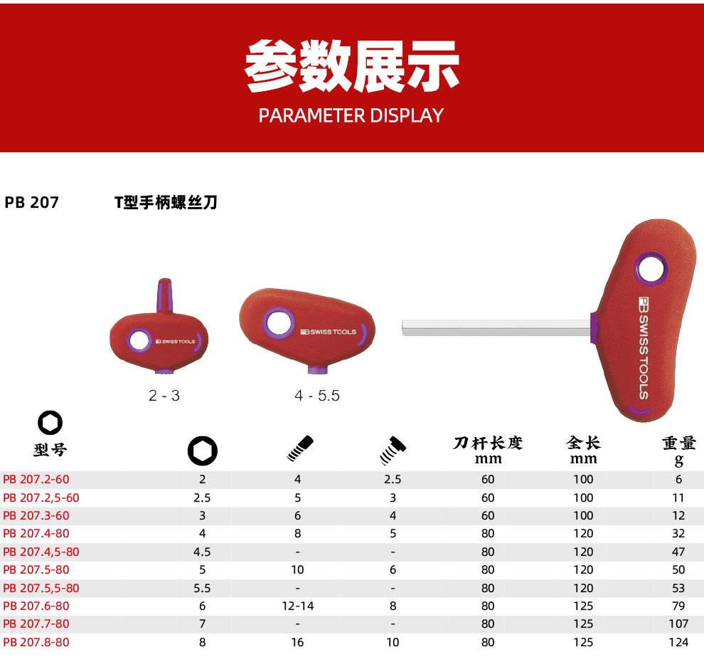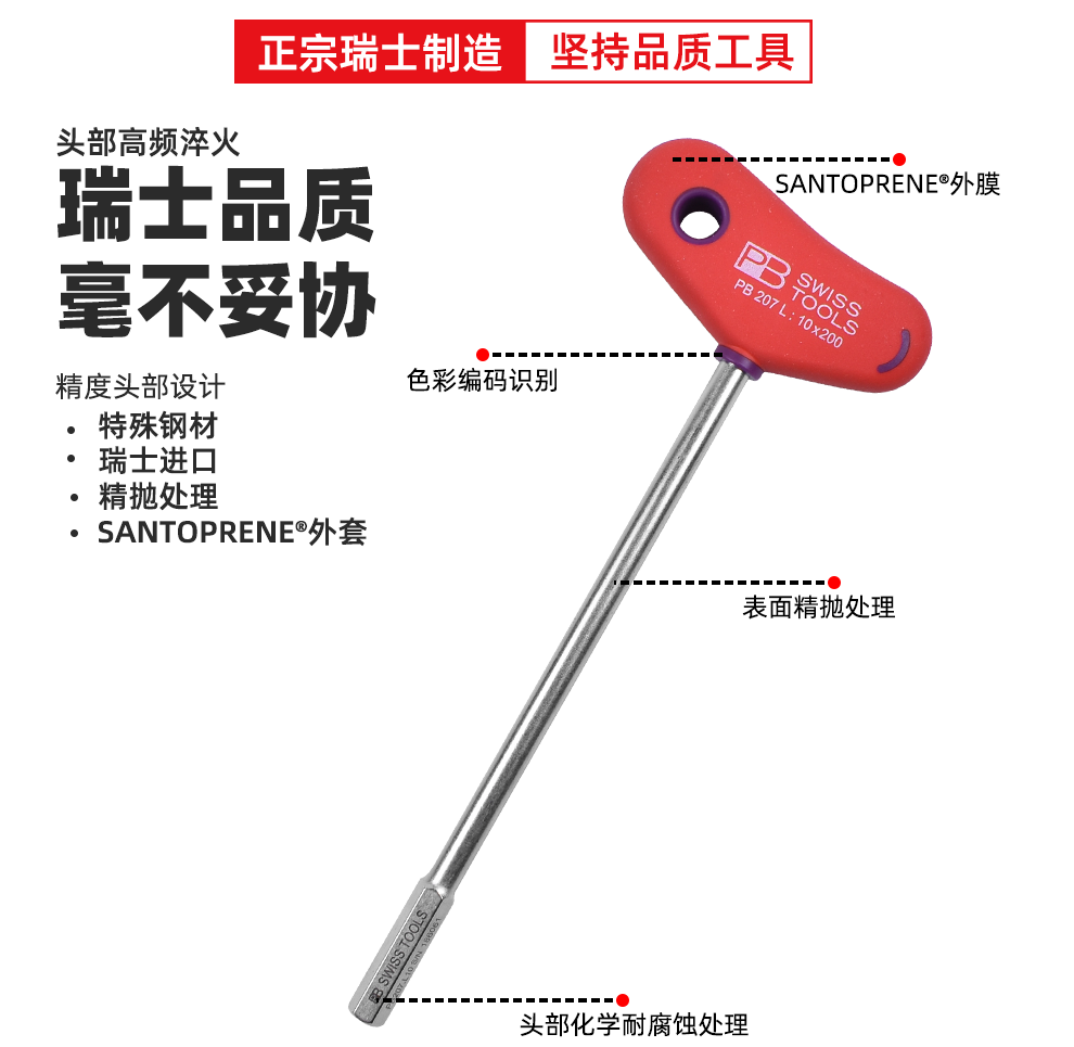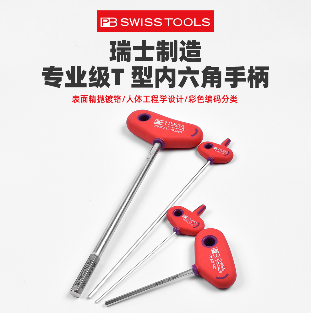 PB 瑞士工具的内六角扳手PBSWISSTOOLST形内六角扳手,2×60mm,PB207.2-60,T型扳手T型内六方扳手丁字形扳手
