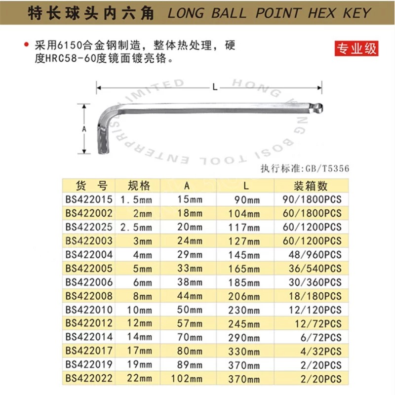 捷科 球头镀铬特长内六角扳手,3mm,BL-3C,020530,艾伦扳手 7字型扳手 拐杖型扳手 |