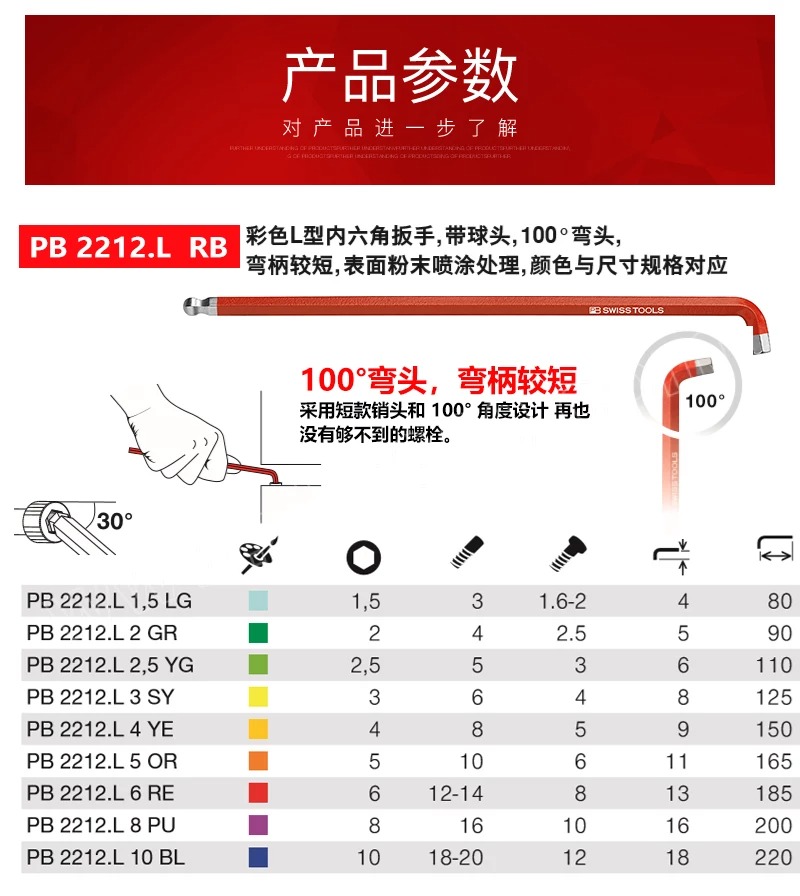 PB SWISS TOOLS L型球头内六角扳手,2.5mm,PB 212.L 2,5,艾伦扳手 内六方 7字型 拐杖扳手 |