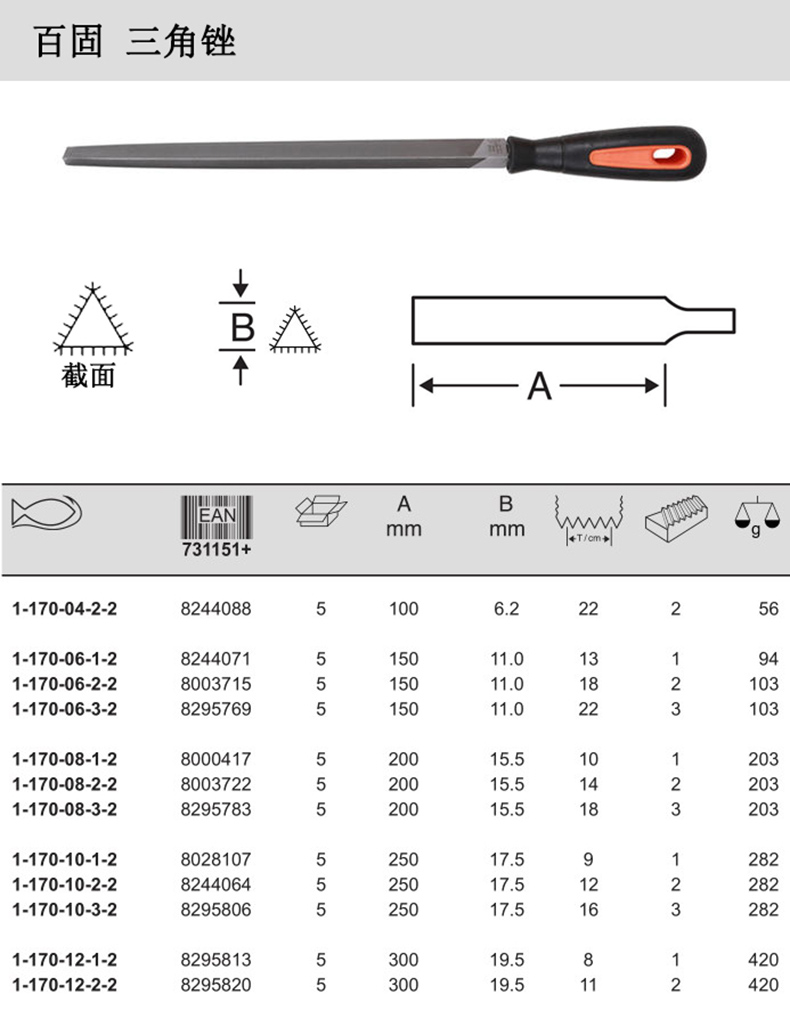 BAHCO/百固的锉百固BAHCO,10寸中齿三角锉,1-170-10-2-2,1把