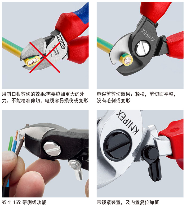 KNIPEX/凯尼派克的电锤钻.冲击钻.电镐凯尼派克Knipex电缆剪,带自锁螺钉,9522165