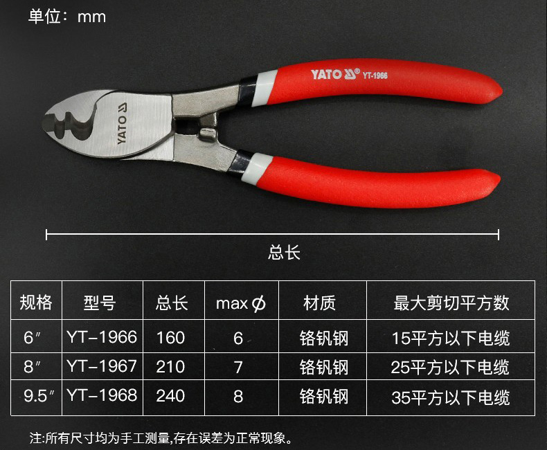 YATO/易尔拓的电锤钻.冲击钻.电镐易尔拓YATO电缆剪,160mm,YT-1966