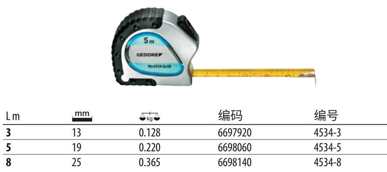长城精工 99系列蓝黄双色壳高耐磨公制扣卷尺,5m*19mm,019955,GW-599E |