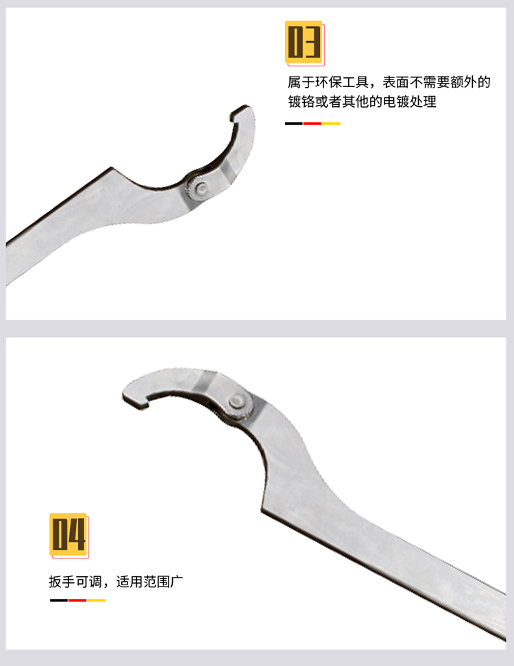 桥防304不锈钢可调勾扳手,90-155mm,T88124B-08 |