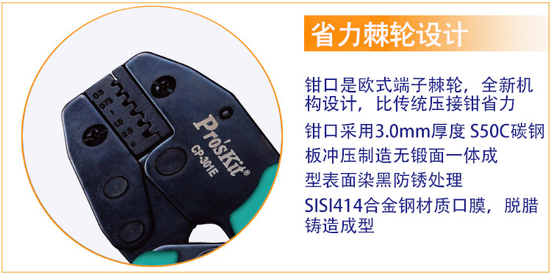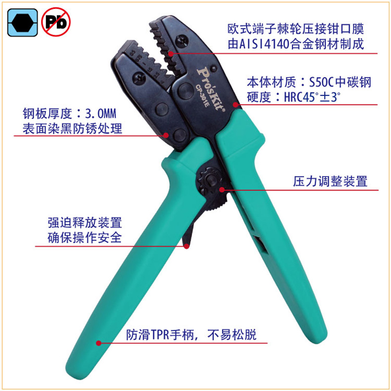Proskit/宝工的压线钳宝工Pro'skitY.O裸端子棘轮压着钳,1.5~10mm2,CP-301N