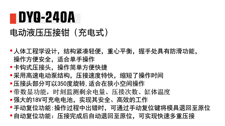DUCK/德克的压线钳德克电动液压压接钳,压接范围,10-240mm²,DYQ-240A