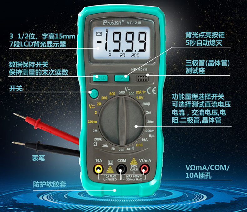 宝工 Pro'skit3 5/6双显示联机型多功能万用表,MT-1820 |