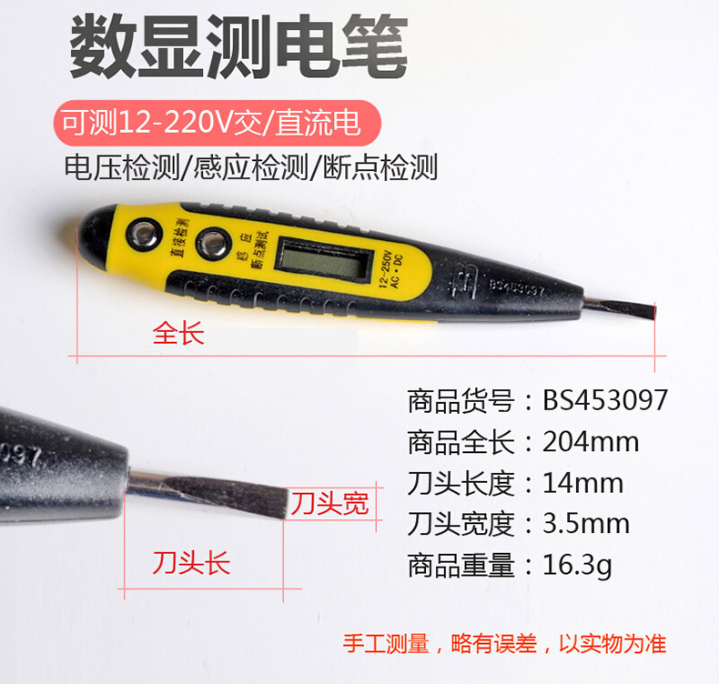 易尔拓YATO 数显带灯测电笔,12-250V,YT-2862 |