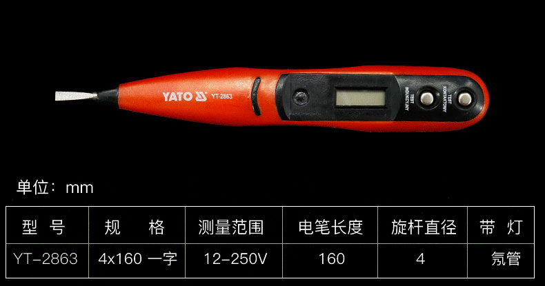 易尔拓YATO 多功能测电笔,70~250V,YT-2864 |