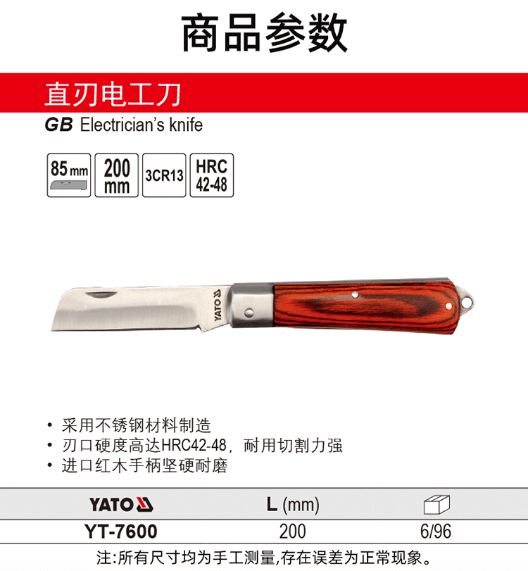 艾逊订货号:D1031400 原始型号:易尔拓YATO 直刃电工刀,L 205mm,YT-7600 品牌:YATO/易尔拓 品牌所属地: