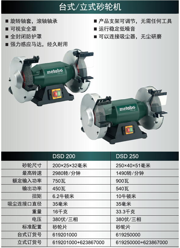 Metabo/麦太保的电动台式砂轮机麦太保台式砂轮机,砂轮125×20×20mm,200W,0.9Nm,DSD200